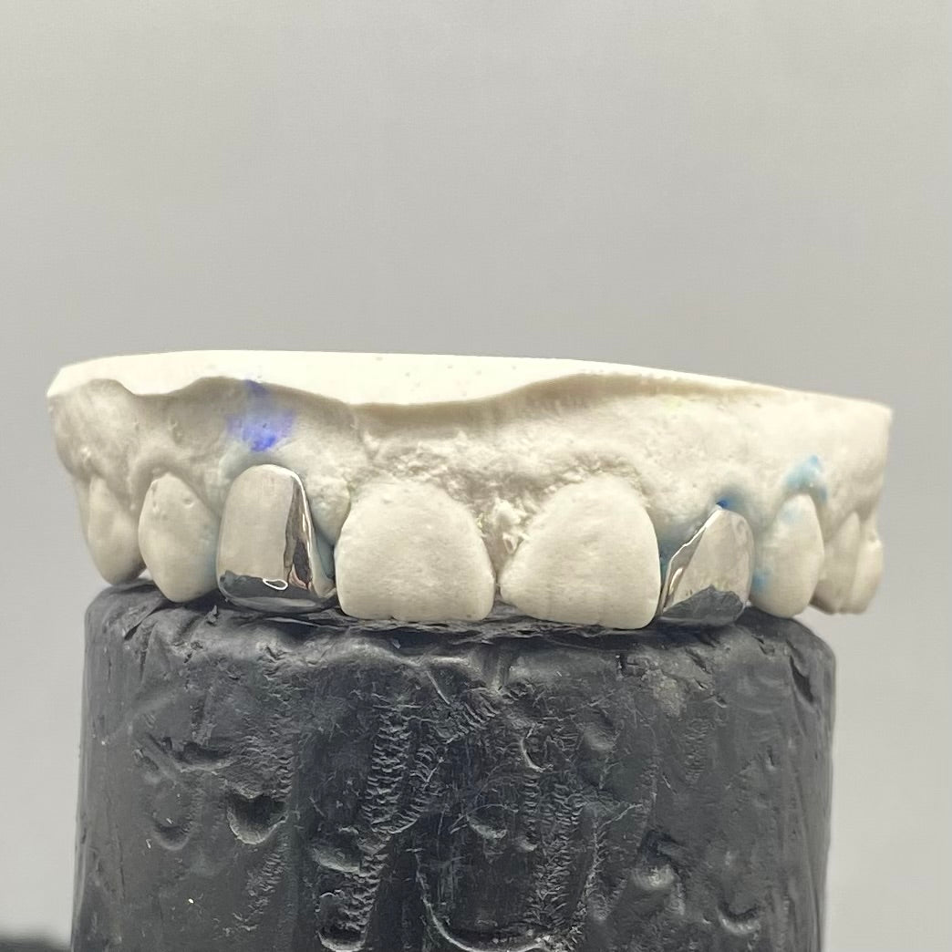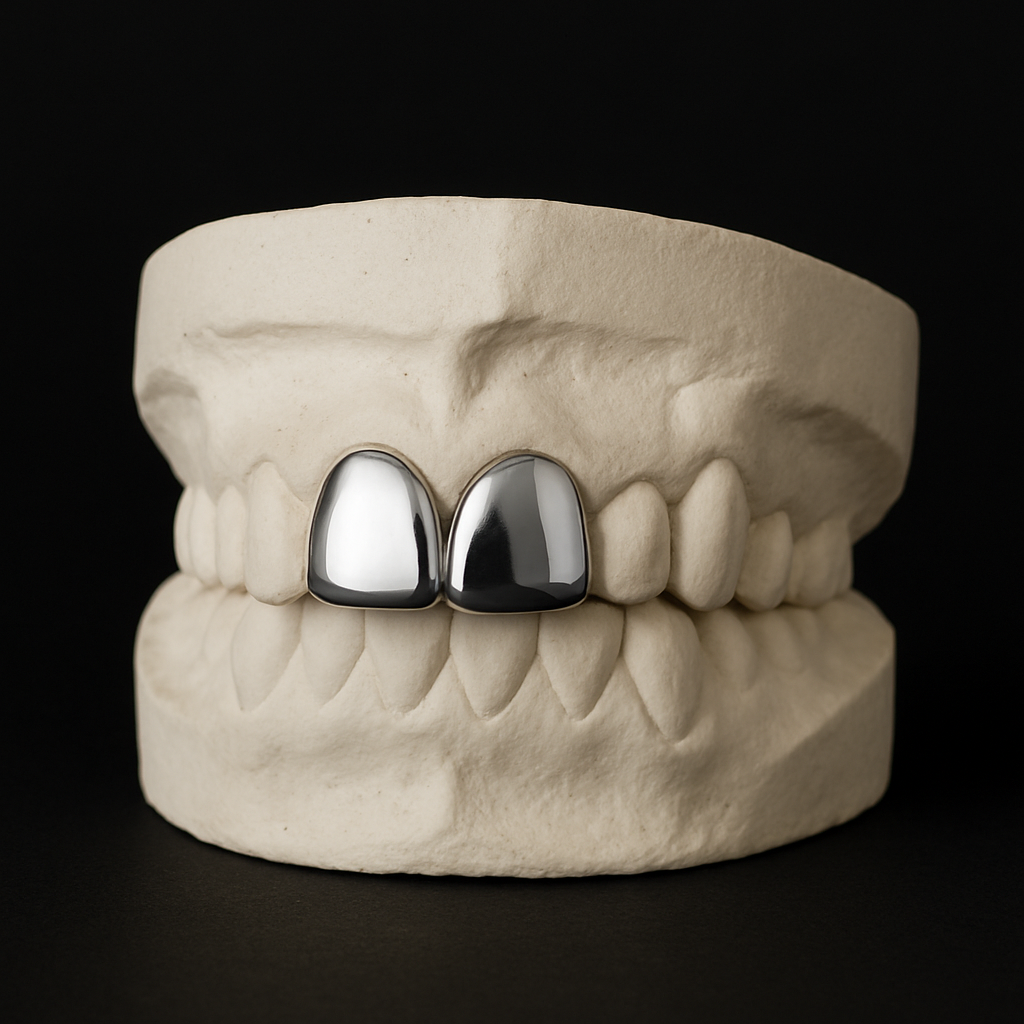 Ein Statement in purer Perfektion. Diese Double Full Caps aus hochwertigem Chrom verleihen deinem Lächeln einen edlen, spiegelnden Look.